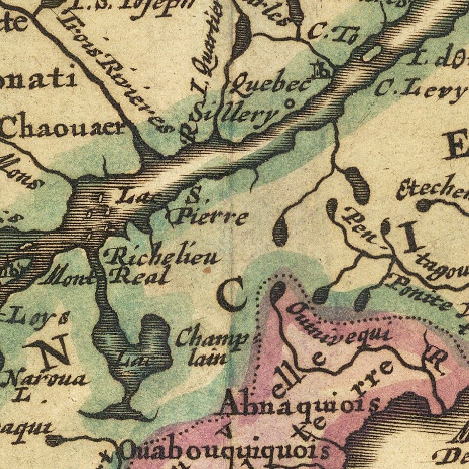 Along with Sanson's larger map issued in 1656, this map includes many firsts and changes of great note. First appearance of Lake Erie ou du chat, which referenced the panther like qualities of the local Indians. Much improvement in the drainage of the Great Lakes and St Lawrence. The map draws heavily on the Jesuit explorations to the west and the travels of the French Fur Traders.