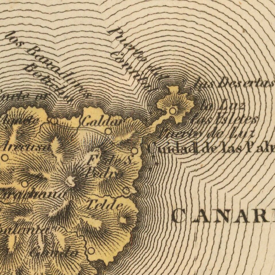 Lucas's map is one of the first detailed commercial maps of the Canary Island published in America. The map depicts the interior topographic details of the island.