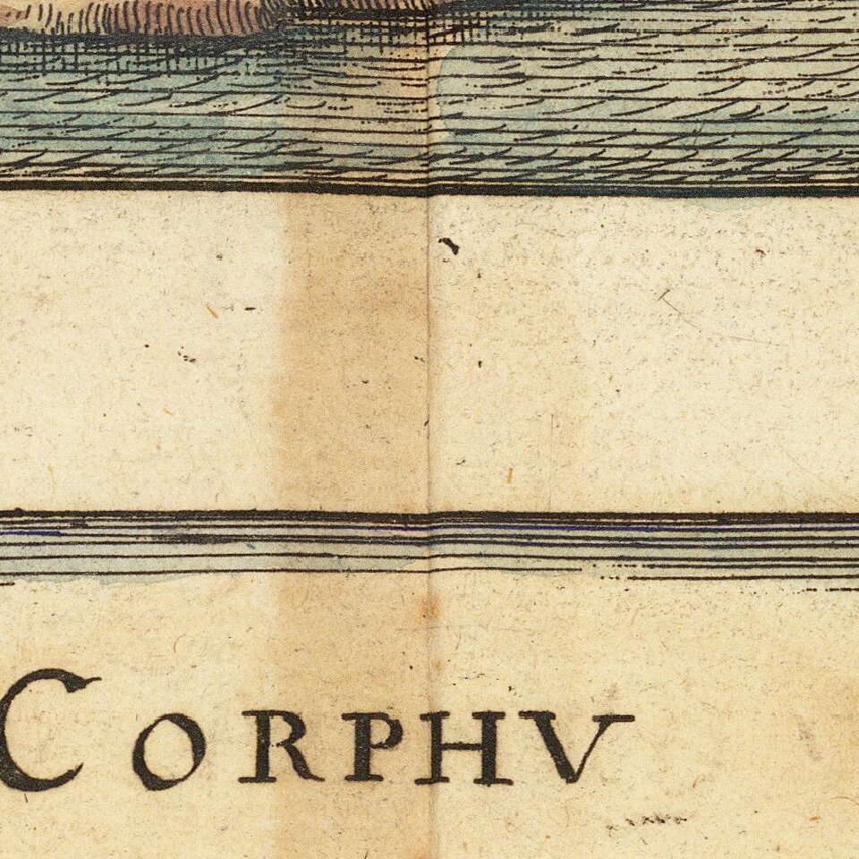 Striking pair of bird's-eye views of Candia and Corphu, from Merian's Neuwe Archontologica Cosmica ..., published in 1638.