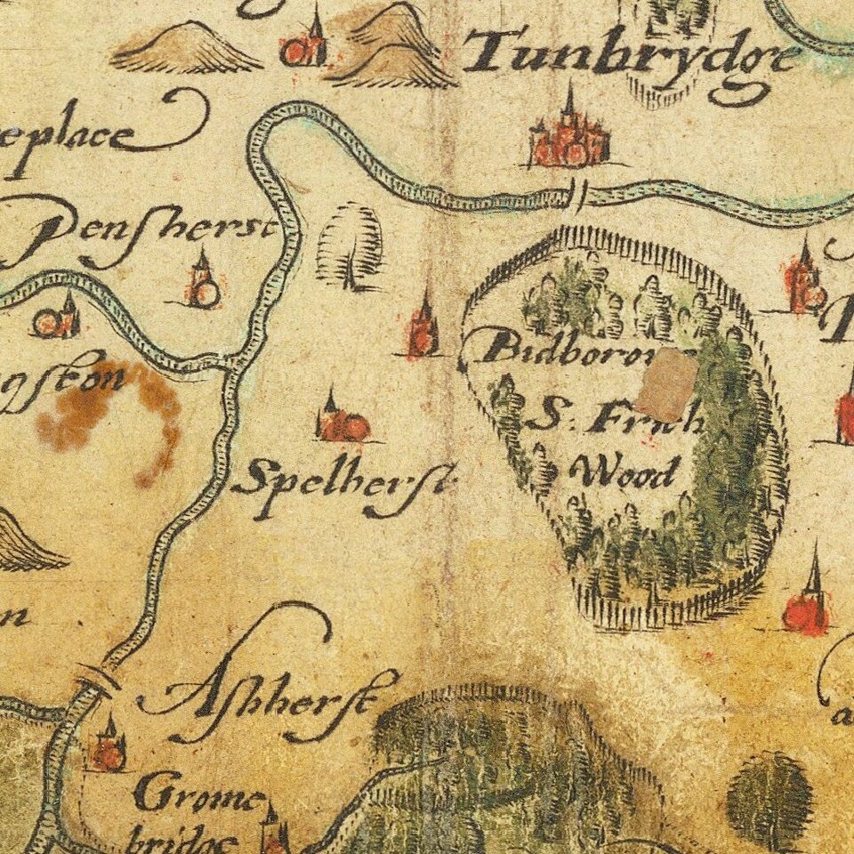 The First Printed Map of Kent, Sussex, Surrey and Middlesex, drawn from Christopher Saxton's 16th Century Survey of England.