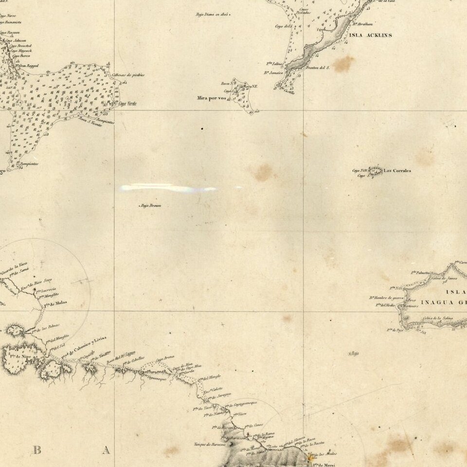 The Dirección de Hidrografía, or the Directorate of Hydrographic Works, was established in 1797. Its roots were in the Casa de Contratación, founded in 1503 in Sevilla, which housed all the charts of the Spanish Empire and oversaw the creation and maintenance of the padrón real, the official master chart. The Casa, now in Cadiz, was shuttered in 1790, but Spain still needed a hydrographic body. In response, the Dirección was created in 1797. One of its first projects was the publication of charts from the Malaspina Expedition (1789-1794). The Dirección oversaw not only publication, but also surveying. The Dirección was abolished in the early twentieth century, when their work was distributed to other organizations.