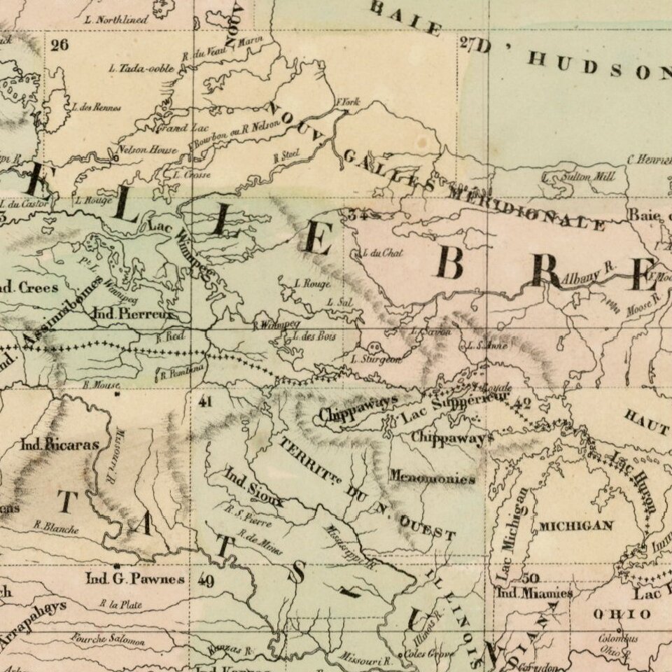 From 1825 to 1827, he released his first atlas, the Atlas universal, which was well received. It was sold in forty installments of ten maps each, with 810 subscribers listed. The atlas contained 387 maps in six volumes at a uniform scale of 1:1.6 million. The maps were intended to be joined and together would create a globe 7.755 meters wide. It was the first atlas to show the entire world on a large uniform scale and was the first atlas produced using lithography. This project served as Vandermaelen’s gateway into intellectual life, gaining him membership in the Royal Academy of Sciences and Belles-Lettres of Brussels (1829).