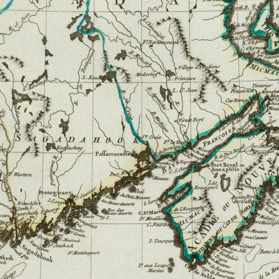 Finely detailed map of the Northeast extending from Philadelphia up the coast to Ile d'Anticosti and the mouth of the St. Laurence, published in Paris, shortly after the French Revolution.