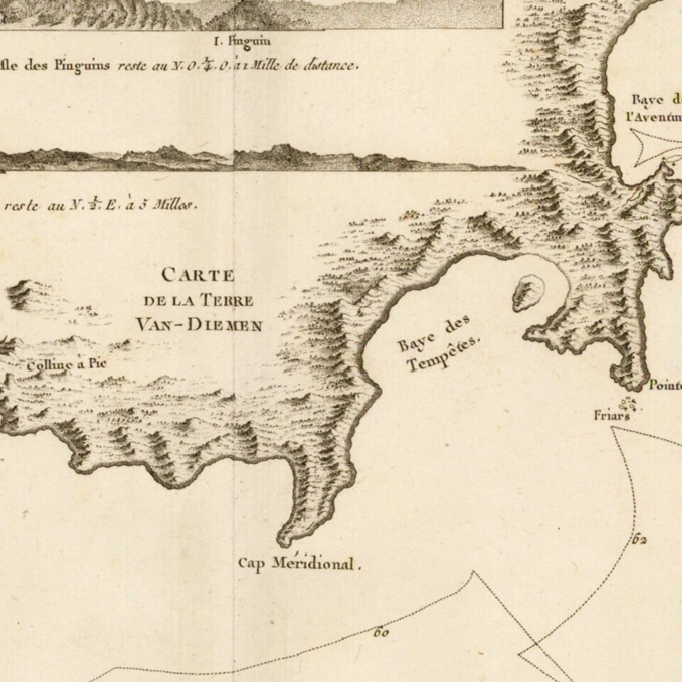 Detailed map of the Coast of Van-Diemen (Tasmania), from the French edition of the official account of Cook's voyage.