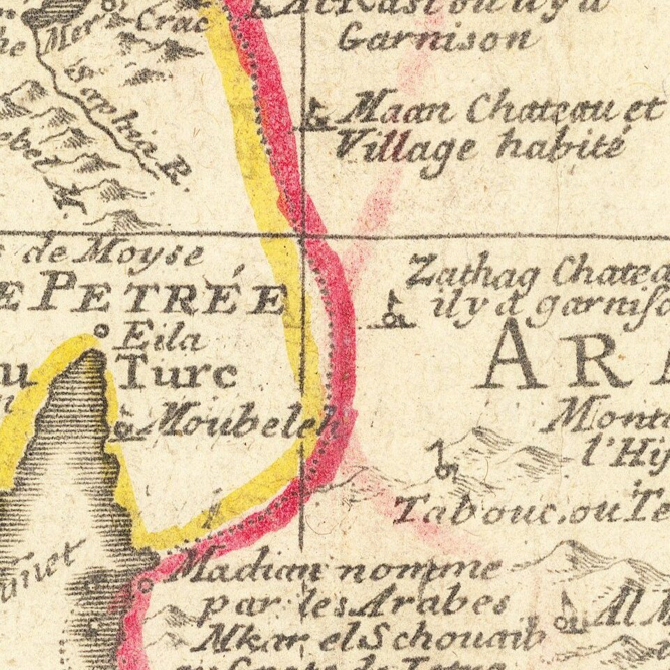 Fine example of an state of De L'Isle's map of the Turkish Empire and Arabian Peninsula, with De L'Isle's "Quai de l'Horlogie al Aigle d'Or" address, which was used only briefly after his move from Rue de Cannettes.