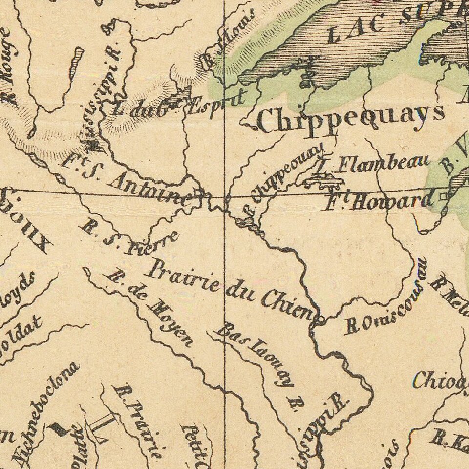 Highly detailed map of North America, with marvelous post Lewis & Clark pre-Fremont cartography. The 54-40 or Fight border of Oregon Territory is shown, with a number of early forts and Hudson Bay Company posts shown in the Northwest. The course of the Columbia and its tributaries are well described for the period, showing the results of Lewis & Clark's expedition. In California, two rivers from from the Pacific to the two Salt Lakes in Utah, one starting south of Monterrey (R. Buenaventura) and the other from San Francisco Bay (R. Millers--one of the rare appearances of this ephemeral name). Nice detail in Texas and throughout the Southwest, pre-dating Fremont's expeditions but likely with some knowledge of Jedidiah Smith's travels, which had by now appeared in French travel literature. Beginning in the early 19th Century, Lapie was one of the leading French mapmakers, at a time when much of the great exploration and travel literature was being published in French. Lapie was often the engraver of maps which were included in these books. As a result, he often incorporated the most recent information and discoveries in his maps, often appearing prior to the official report from which the information derived. His maps are now prized for their detail, accuracy and attractive engraving style.