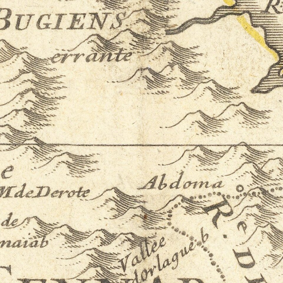 De L’Isle also played a prominent part in the recalculation of latitude and longitude, based on the most recent celestial observations. His major contribution was in collating and incorporating this latitudinal and longitudinal information in his maps, setting a new standard of accuracy, quickly followed by many of his contemporaries. Guillaume De L’Isle’s work was widely copied by other mapmakers of the period, including Chatelain, Covens & Mortier, and Albrizzi.