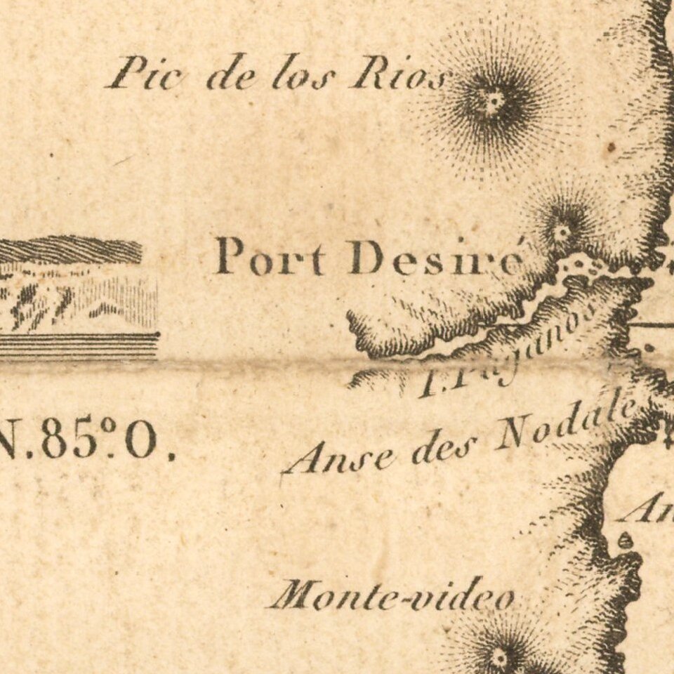 First state of this scarce French Sea chart of the southernmost part of South America, first published by the Depot de la Marine in 1800.