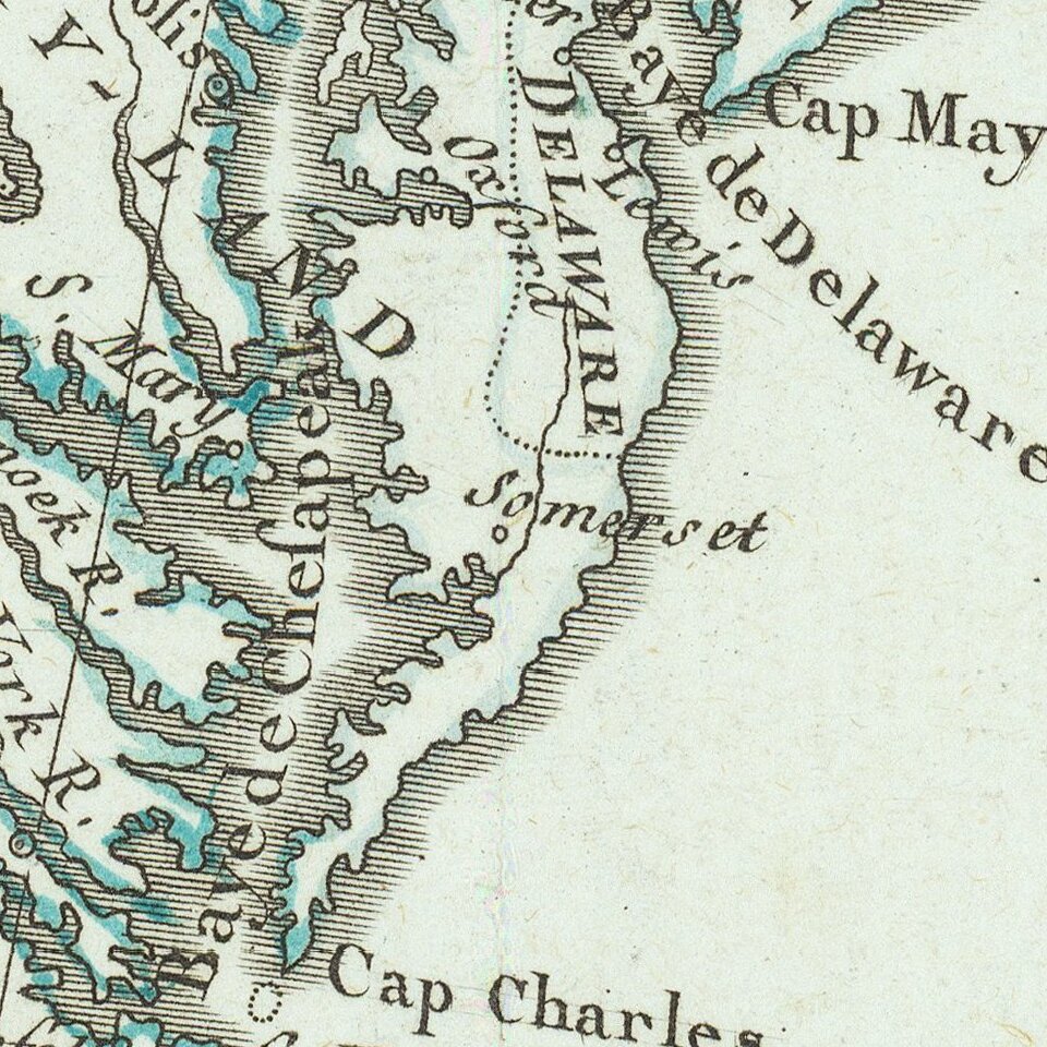 The map shows the 13 Colonies, pre-dating the appearance of Vermont. Maine is named, as "Main de Massachusetts." The extent of the newly created United States extends to the Alleghanies and Appalachians, although the names run beyond the engraved border.