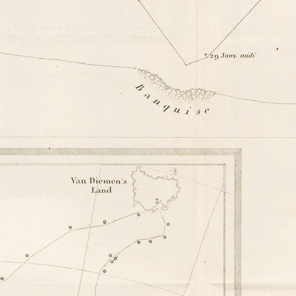 Large engraved folding map of the Antarctic coast south of Van Diemen's Land.