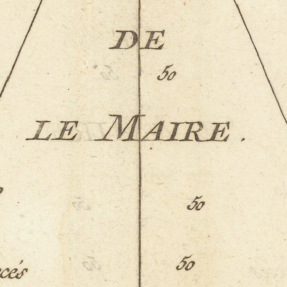 Detailed map of the Straits of Le Maire and Tierra Del Fuego, with a large compass rose.