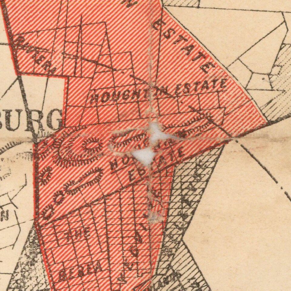 Highly detailed set of maps and profile views of buildings, promoting the activities of the Johannesburg Investment Company.