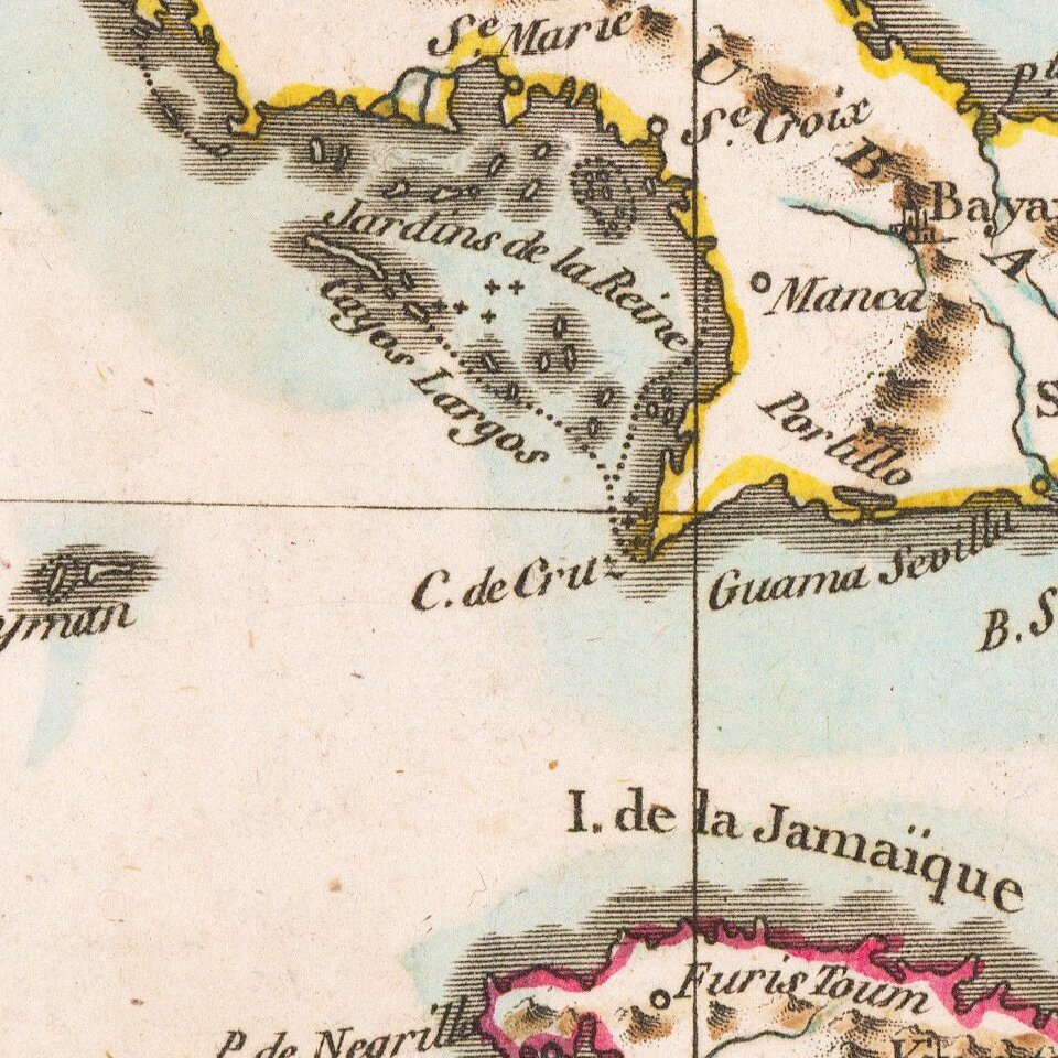 Scarce antique map of Florida, the Gulf Coast, and the Caribbean from Mentelle & Chanlaire's Atlas Universel…, engraved by Tardieu and drawn by Valet.