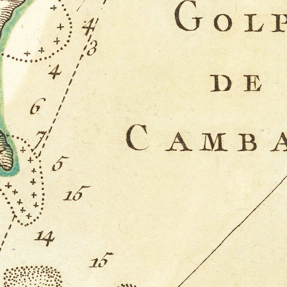 Finely engraved map of the Gulf of Khambhat, showing the region of Gujarat north of Surat.