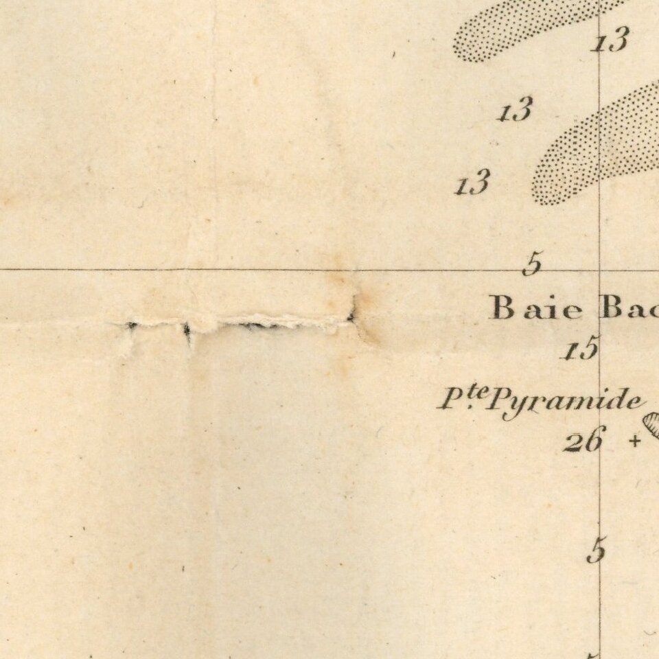 The annotations in the area of Hai Phong show the attempts to significantly improved the known hydrographical and geographical information in the region, which was still not well understood by the French. There are two groups of annotations, executed in a contemporary French hand.