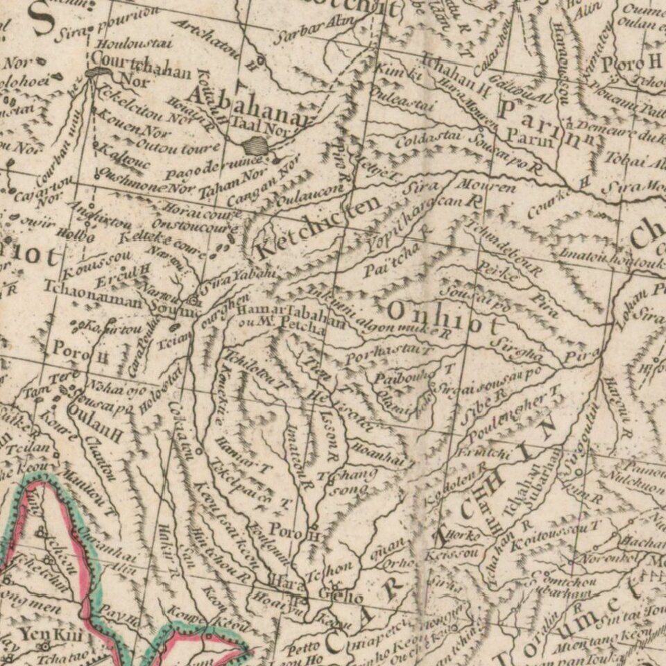 D'Anville's atlas of China is the principal cartographic authority on China during the 18th century. D'Anville used maps prepared by Jesuit missionaries and commissioned by Emporer-Kanyx, who in 1708-1716 ordered a surveying of the country. A copy of these surveys was sent back to Paris and the Royal cartographer D' Anville was commissioned to draw this map, which was the first reasonably accurate picture of that remote land.