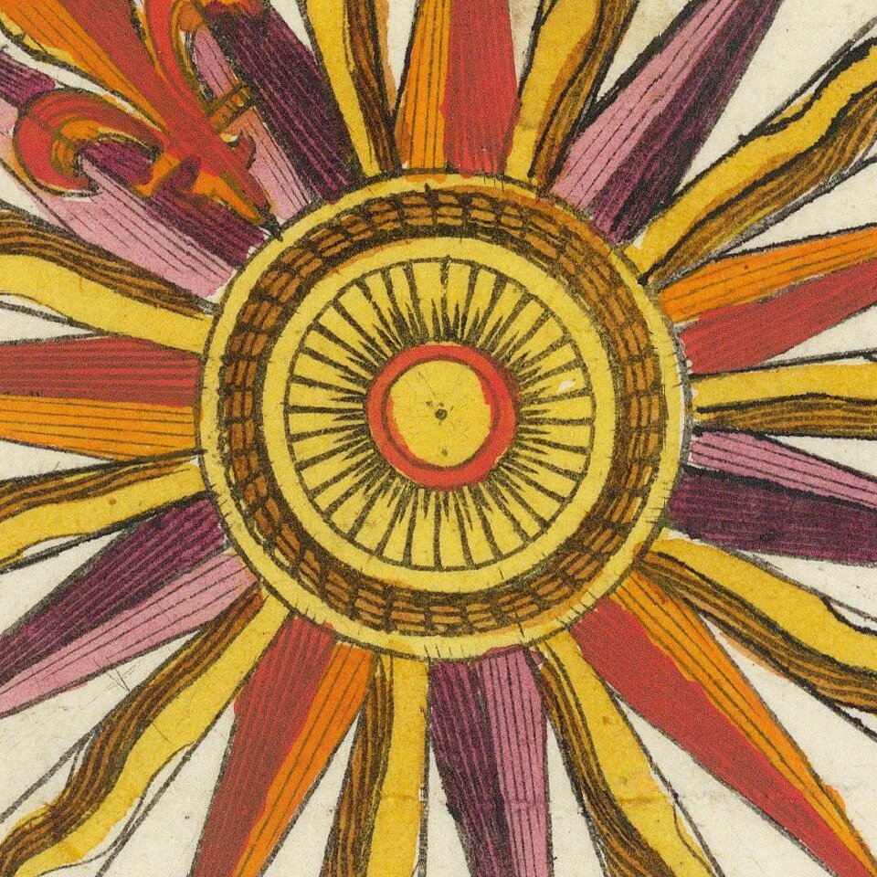Rare separately published chart illustrating a 22 point compass, along with the names of 32 different wind directions, given in 6 different languages.