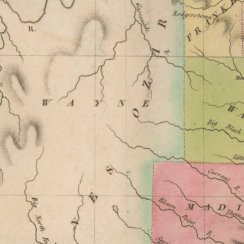 Buchon's map is also one of the earliest maps of Missouri, preceded only by maps published in the United States by Lucas, Carey & Lea and Finley.