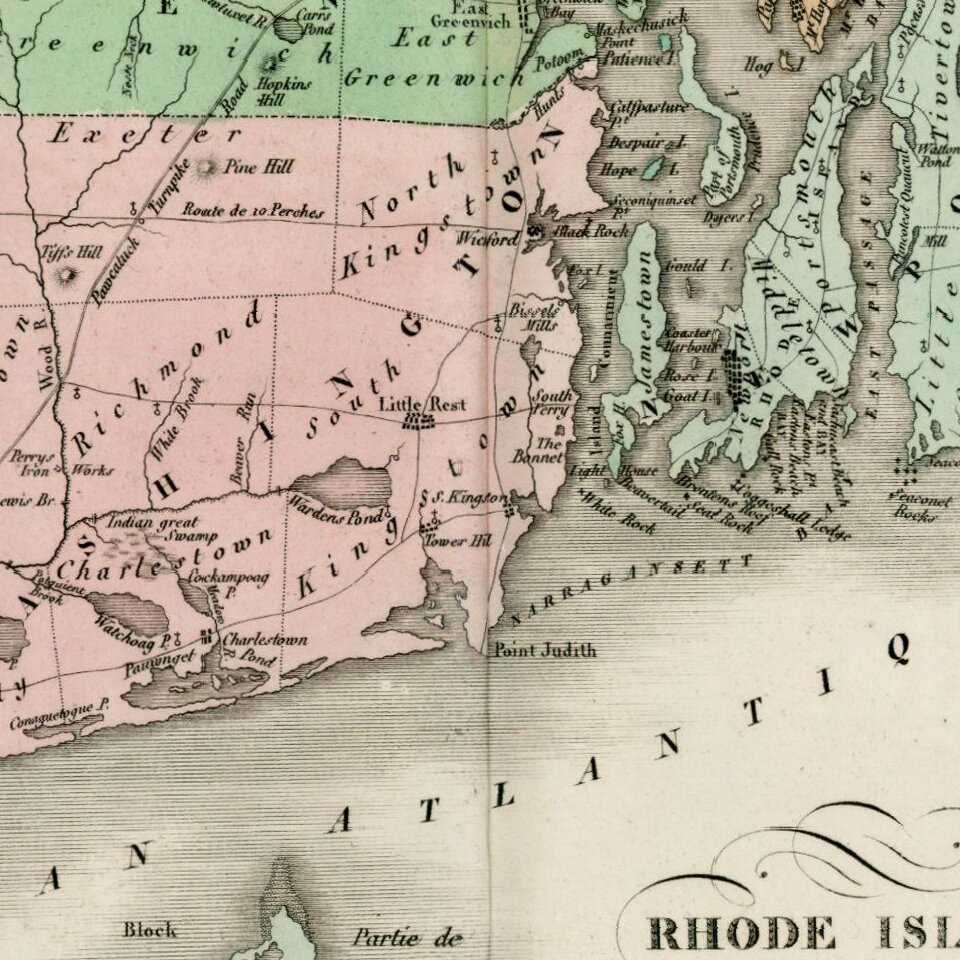 Nice example of the French edition of this early map of Rhode Island from Carey & Lea's Atlas.