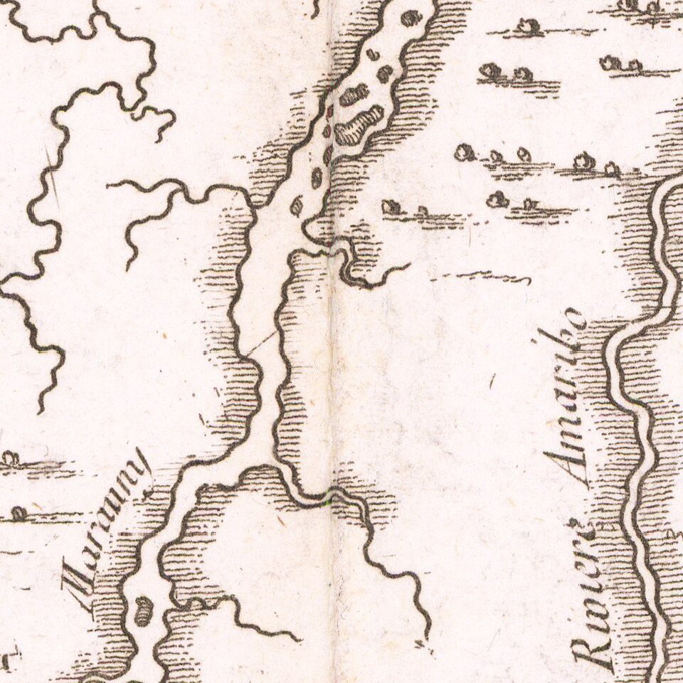 This magnificent, large-scale map of the coast of Guyana covers the region from the mouth of the Orinoco to Cabo Norte with the regions noted as being Spanish, Dutch, French and Portuguese possessions.