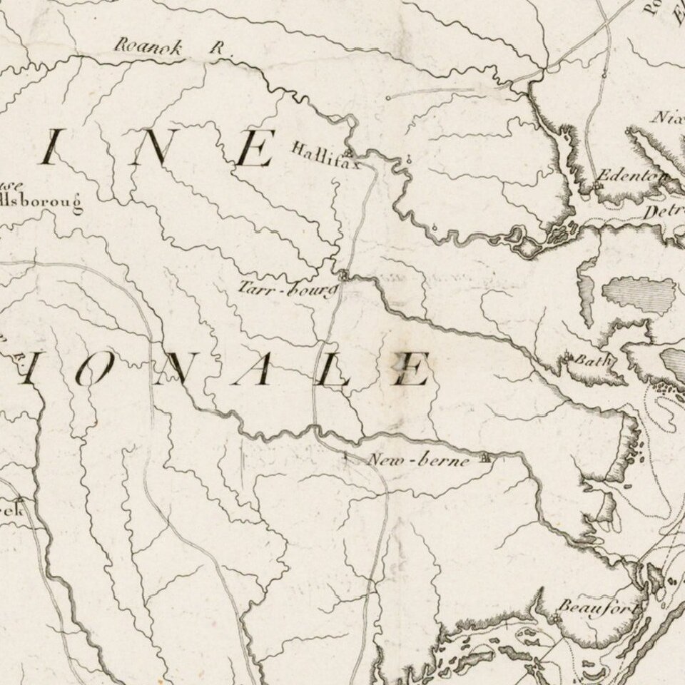 The map provides a nice treatment of the region from the Chesapeake to Georgia, drawn from official French sources, most notably, the very rare Sheet #2 of the Neptune Americao-Septentrional. A number of early roads are shown, along with Fort Watson, Fort Mott, Fort Granby, Nelson Ferry and other details in South Carolina. A Moravian Settlement, Iron Works and a Quaker Meeting House are among the places located on the map.