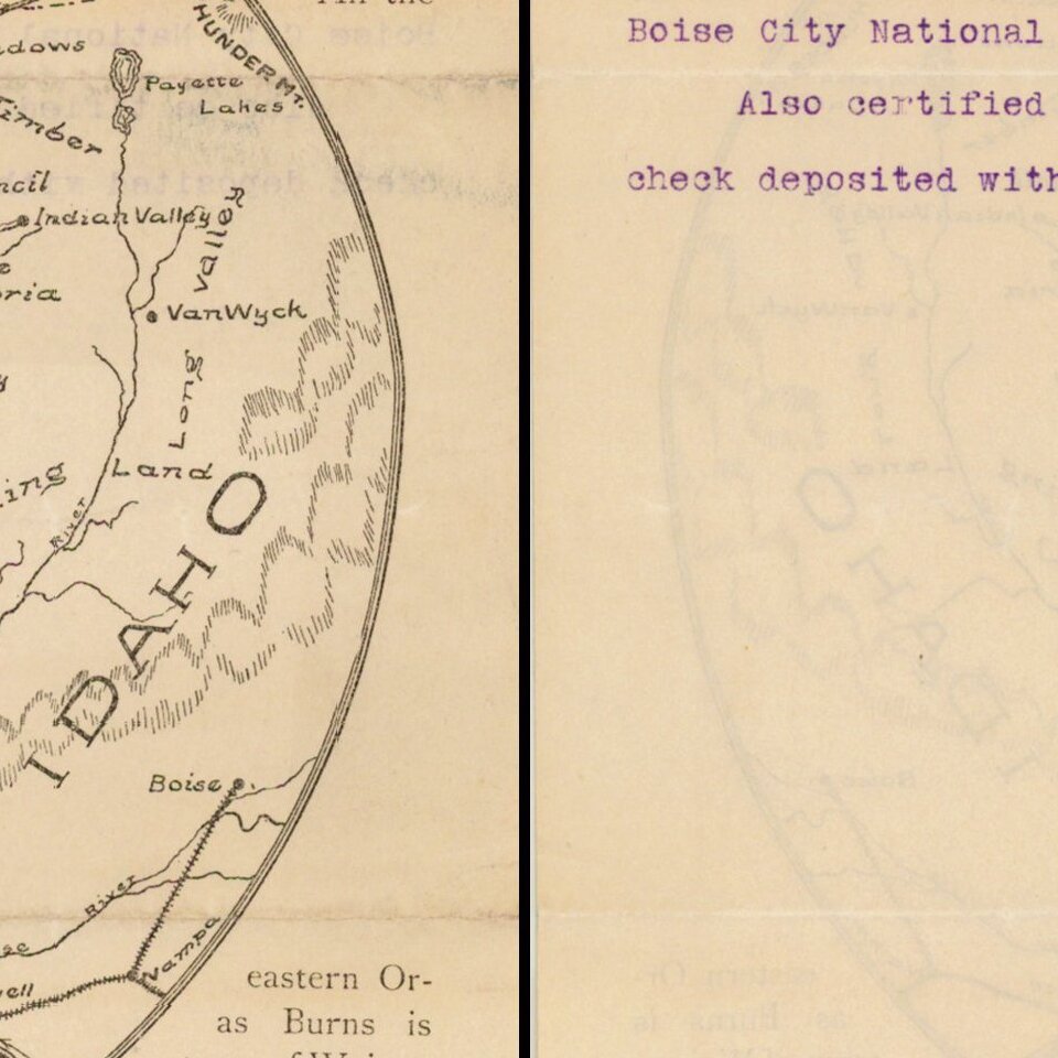 Interesting promotional letter sheet map of the area around Weiser, Idaho, with a letter on the verso referencing the Weiser Irrigation District -- Washington County, Idaho.