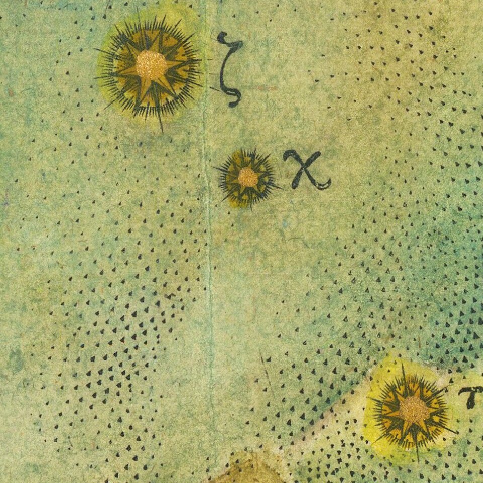 Striking full-color example of Bayer's celestial chart of Cetus, with the stars heightened in gold. The present example has no text on the verso.