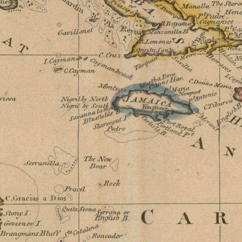 Interesting general map of the Caribbean, published by Matthew Carey in his General Atlas.