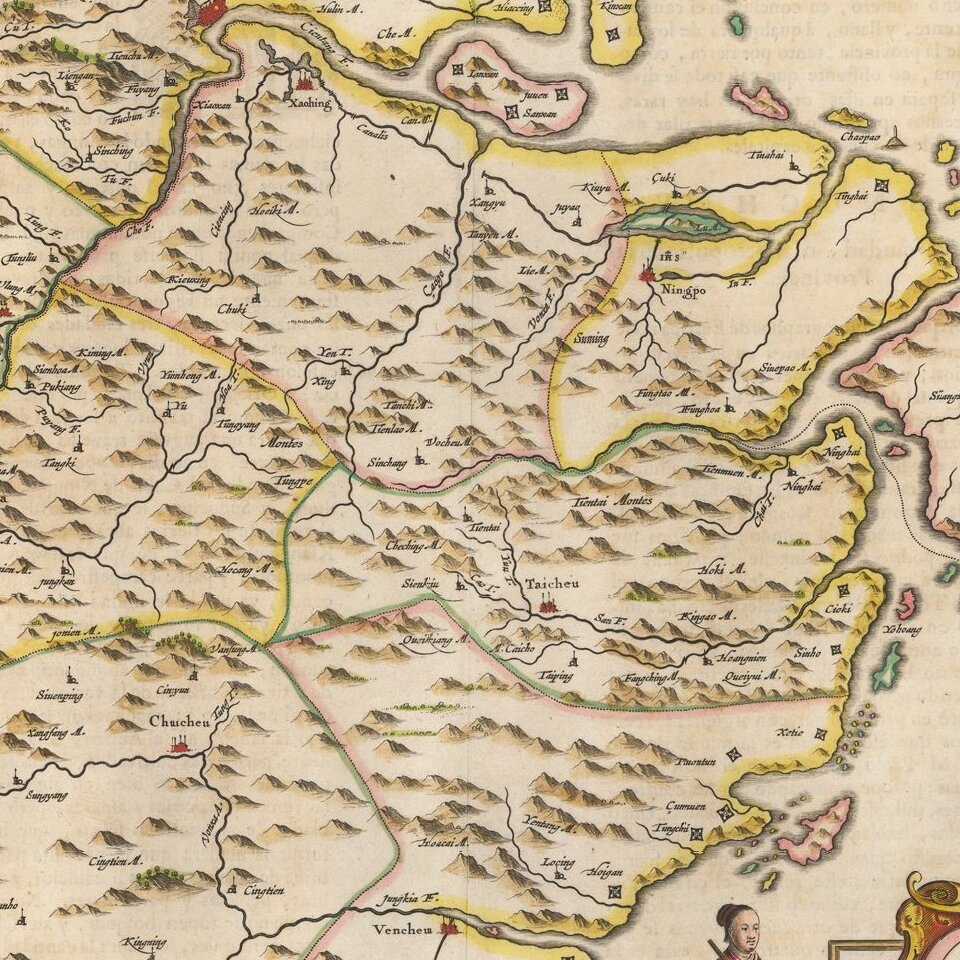 Decorative map of the province, based on the maps of Jesuit missionary Martino Martini, the map features many place names and topographical details, a key to symbols, and decorative cartouche.