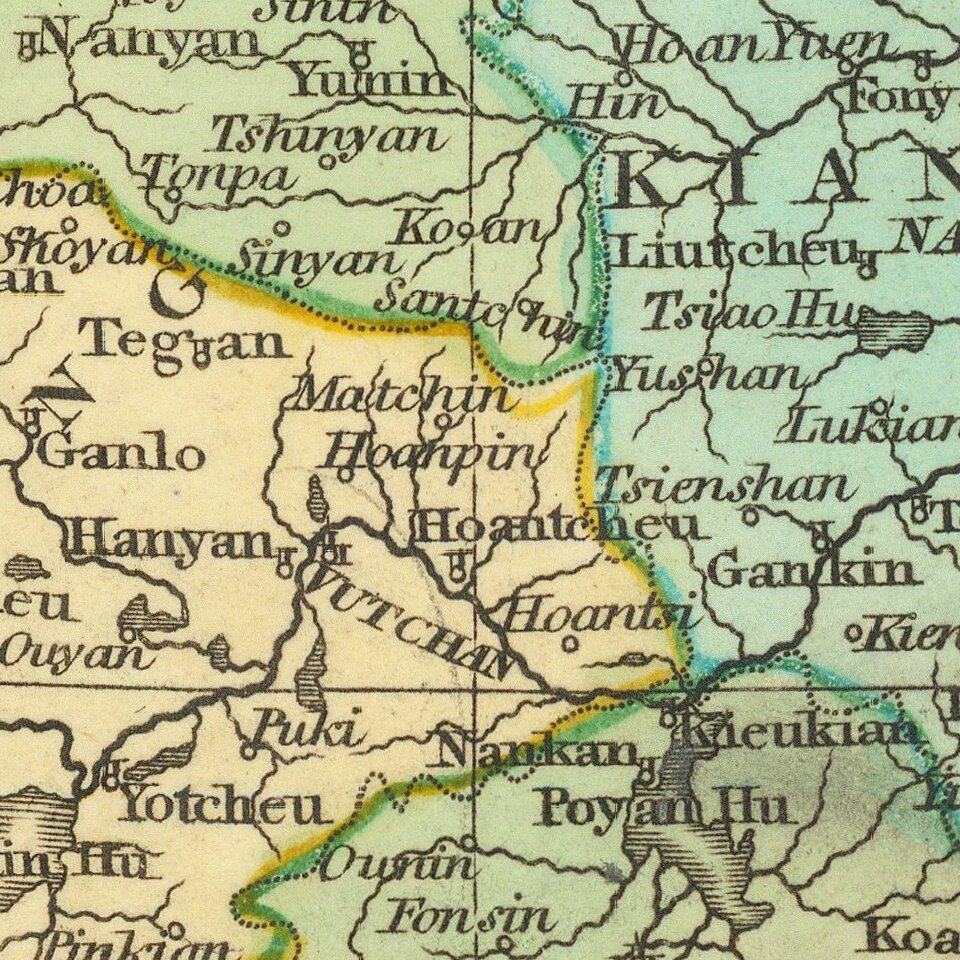 Interesting map of China, extending from Corea and the Sea of Japan and Tartary in the North, to Teypin Is. Belonging to I. Ekeyo, Formosa, Hainan, Tonkin and Yunnan Province.