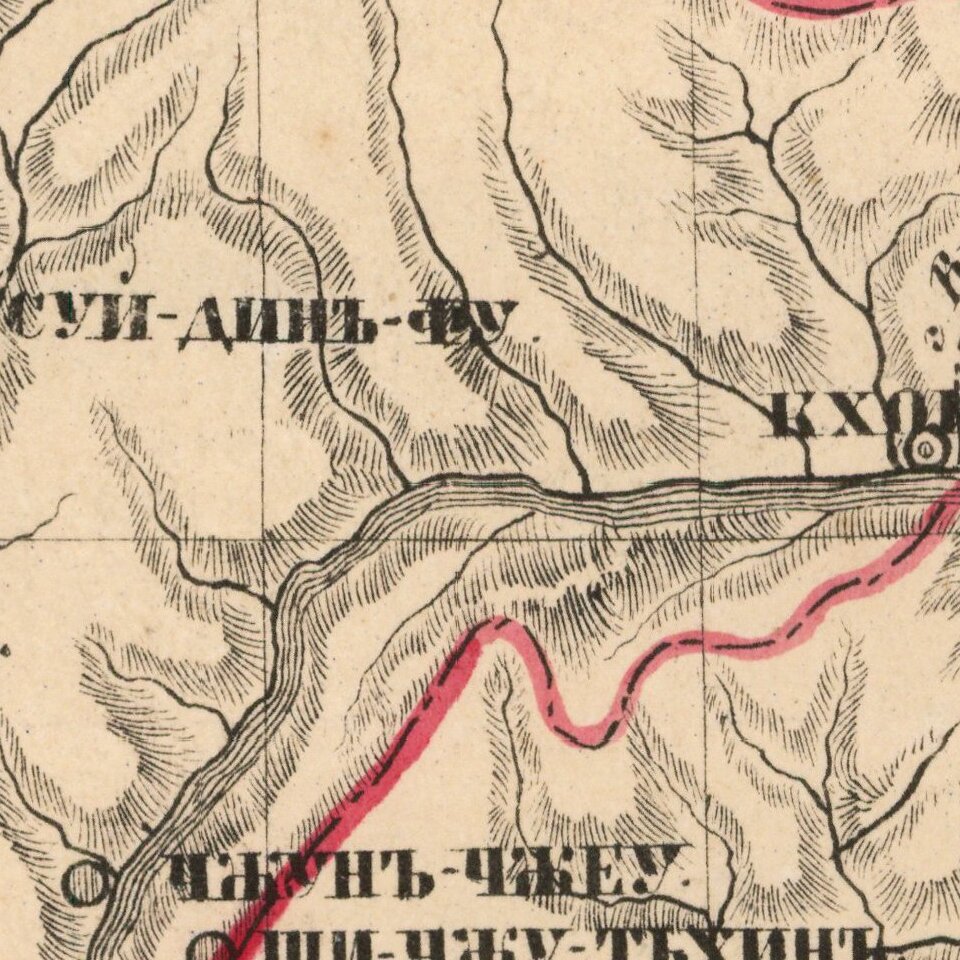 Rare, separately issued hand-colored lithographed map of China, published in Russian, probably around 1850.
