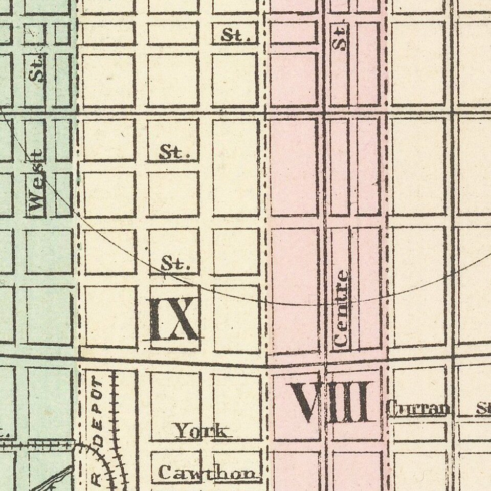 Gorgeous map of Louisville, Kentucky, hand colored by wards, published by OW Gray.