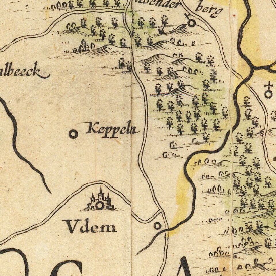 Fine old color example of Blaeu's map the Duchy of Cleve and Dominion of Ravenstein.