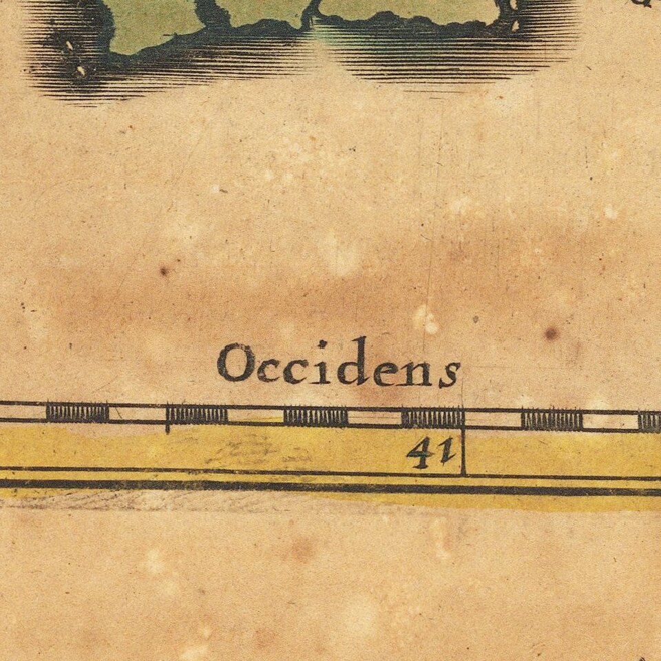 Willem died in 1638. He had two sons, Cornelis (1610-1648) and Joan (1596-1673). Joan trained as a lawyer, but joined his father’s business rather than practice. After his father’s death, the brothers took over their father’s shop and Joan took on his work as hydrographer to the Dutch East India Company. Later in life, Joan would modify and greatly expand his father’s Atlas novus, eventually releasing his masterpiece, the Atlas maior, between 1662 and 1672.
