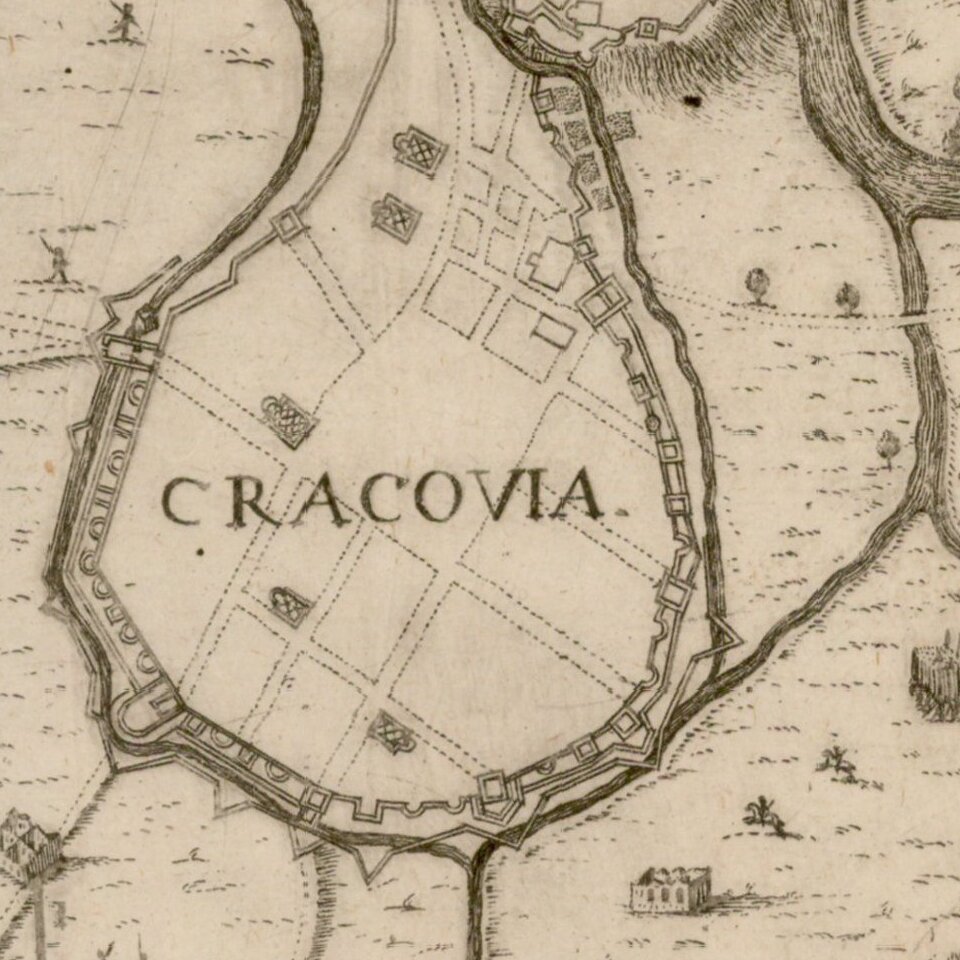 The map shows the positions of the combatants in and around the walled city of Krakow and neighboring Casimiria on the opposite side of the river.
