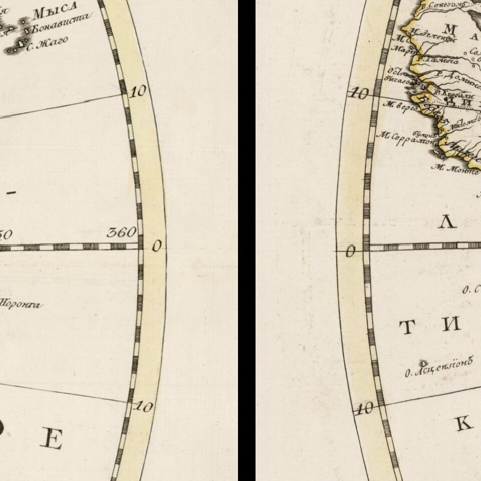 Rare set of Eastern Hemisphere and Western Hemisphere maps, with place names in Cyrillic, likely published at the end of the 18th Century.