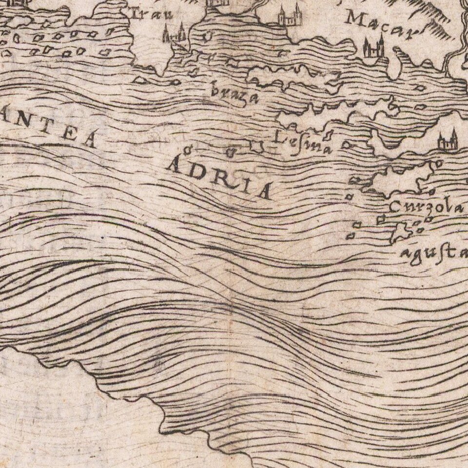 His contemporaries also recognized his skill, as he was named cosmographer to the Republic of Venice, was a member of the Accademia Veneziana, and was a major source for other geographers and mapmakers including Camocio, Bertelli, Cock, Luchini, and Ortelius. He even had his own distinct style of copper engraving that made him a pioneer in his day and makes his works iconic today.
