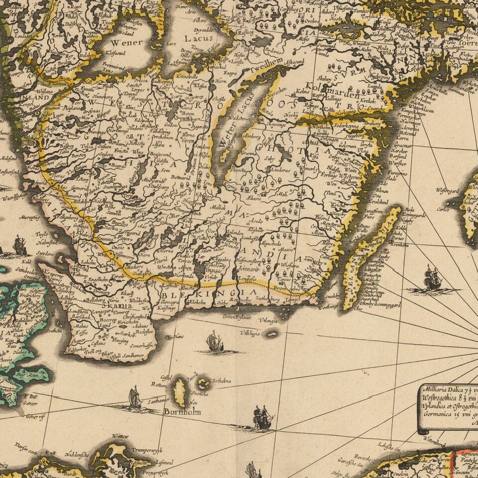 The map would later be issued by Langlois in Paris, circa 1660, with name "Mare Balticum" revised to "Mer Balticque."