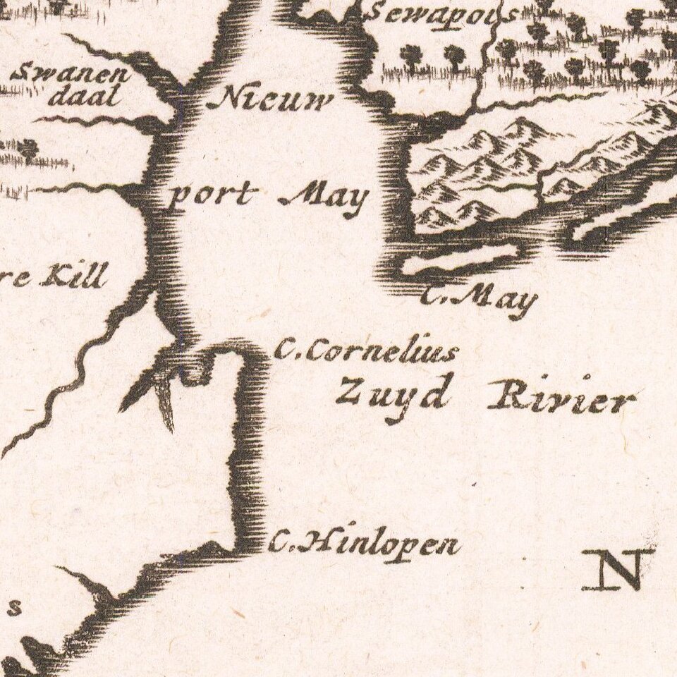 The map is loosely based upon John Smith's map, extending from the Chesapeake to Long Island, and including a number of place names including Jamaica, Breukelen, New Utrecht, Rariton, State I., the East River, Newport, etc., and even more place names in Maryland, Virginia and Delaware.