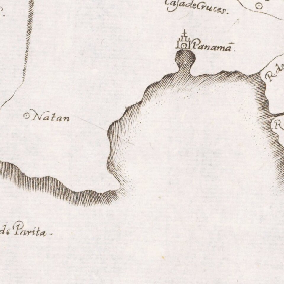 Rare early map of the Audiencia of Panama, locating rivers and settlements.