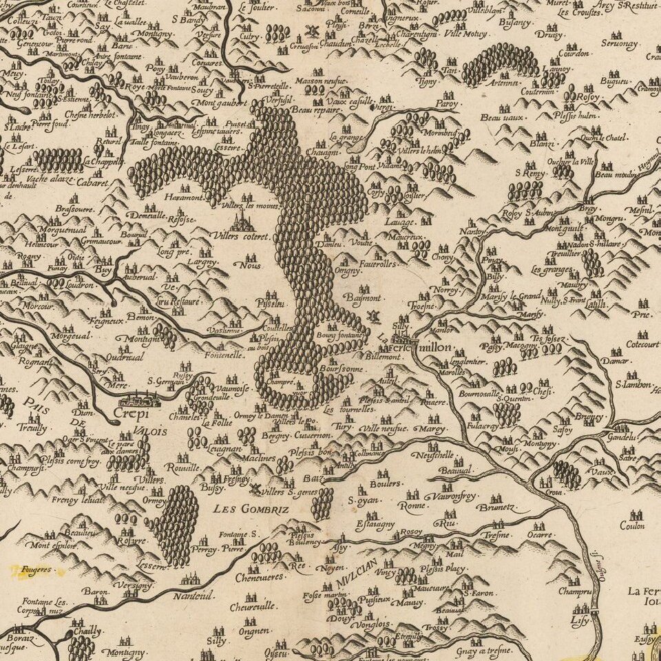 Rare Damien de Templeux map of the region to the northeast of Paris, between the Oise River in the west and the Marne River in the east.