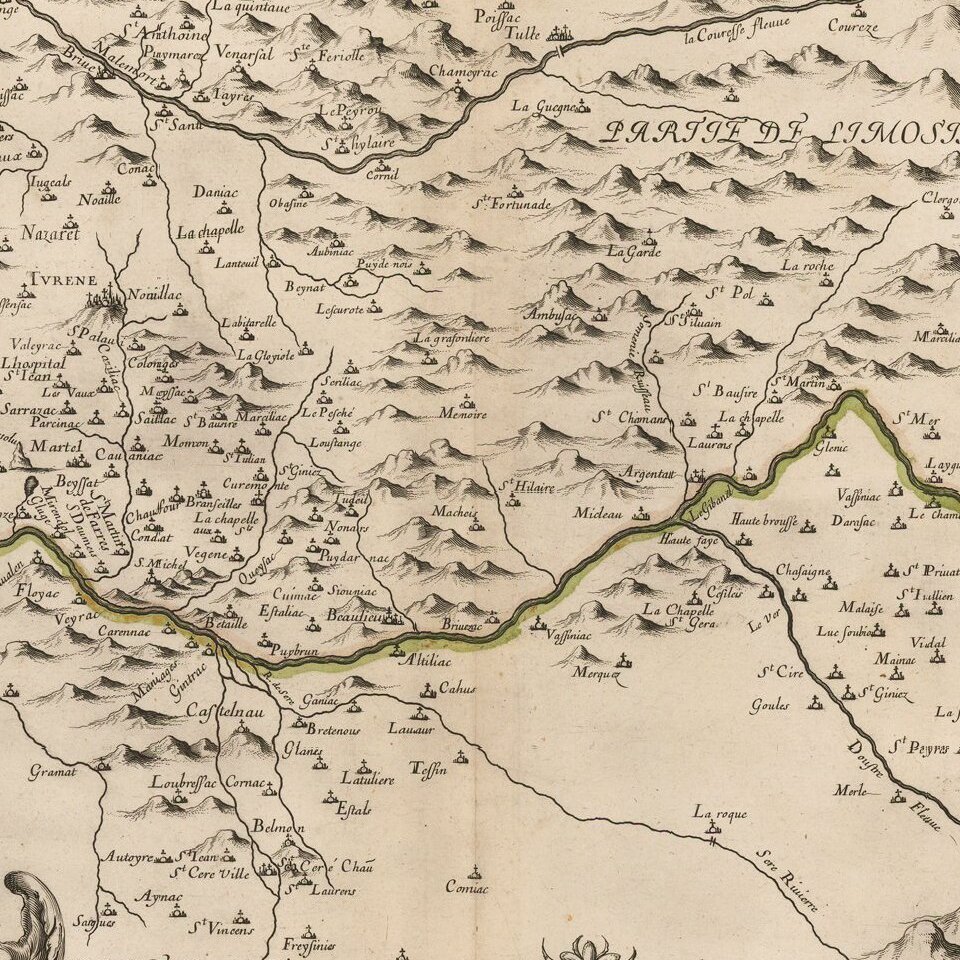Rare map of the Dordogne River Valley and the Coureze River Valley, published in Paris by Michel Van Lochem.
