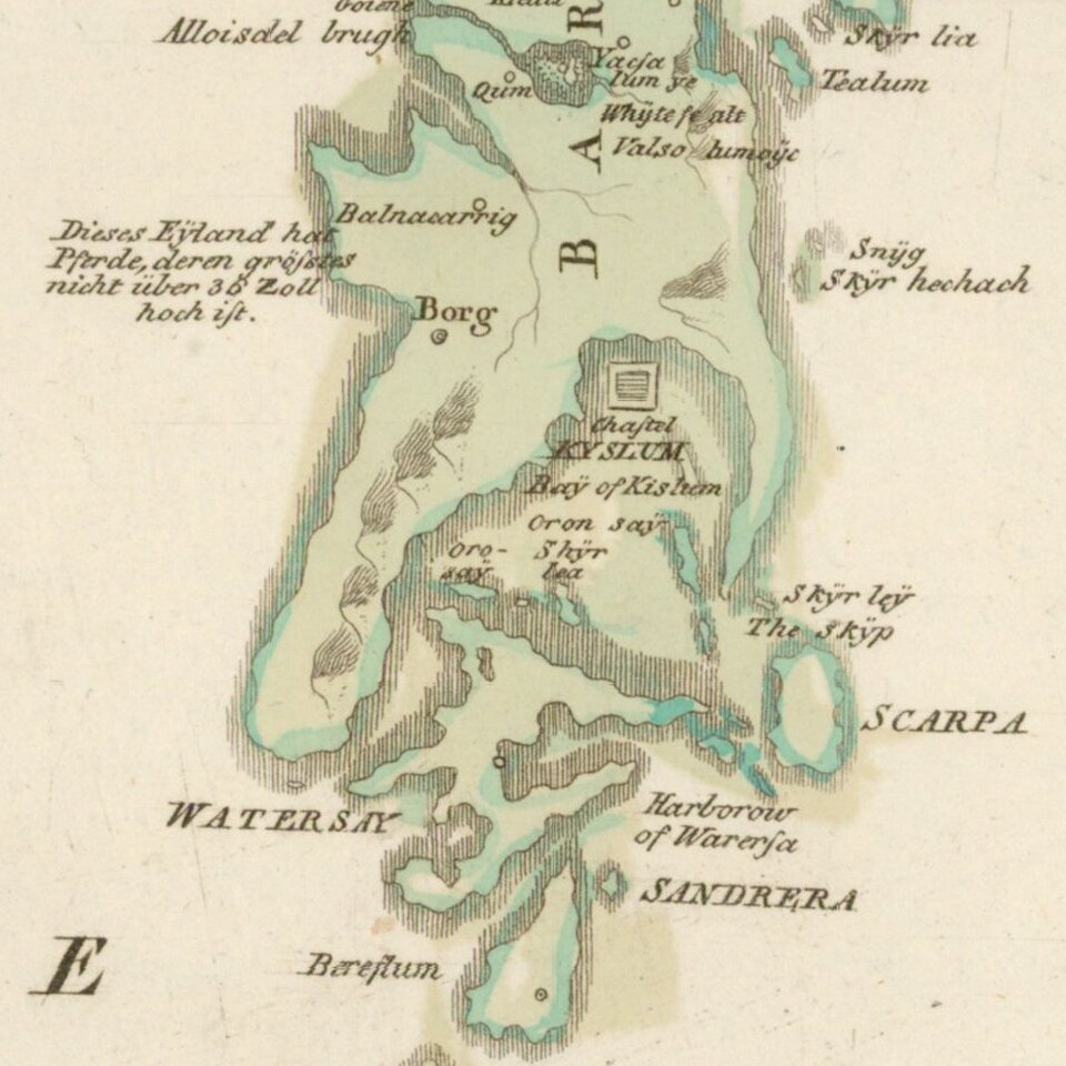 Striking map of Barra and some of the other Western Scottish Islands, from Von Reilly's remarkable atlas.