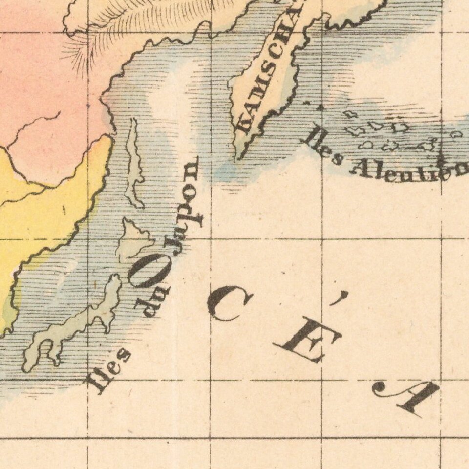 In 1837, Lemmonier also produced his Atlas de la géographie des trois règnes de la nature. Distribution des animaux, des végétaux, des minéraux, à le surface du globe, which contained 3 maps, showing the distribution of Animals, Vegetables and Minerals around the globe. He also produced his Tableau historique des révolutions du globe, par C. Lemonnier, an undated work also lithographed by Desportes in Paris.