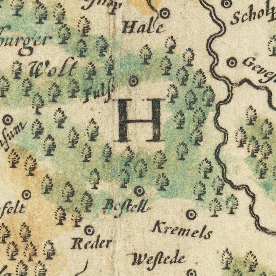 Decorative map of the Duchy of Holstein, engraved by Claus Janszoon Visscher.