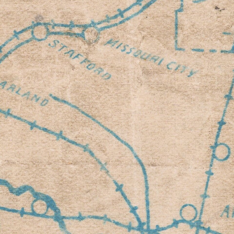 Rare aviation map prepared by Vernon Guy Smylie of the 252nd Aero Squadron, Ellington Field, in Houston, Texas.