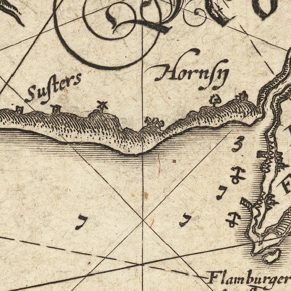 The chart appeared in J Blaeu's Het Licht der Zee-vaert , first published in 1608.