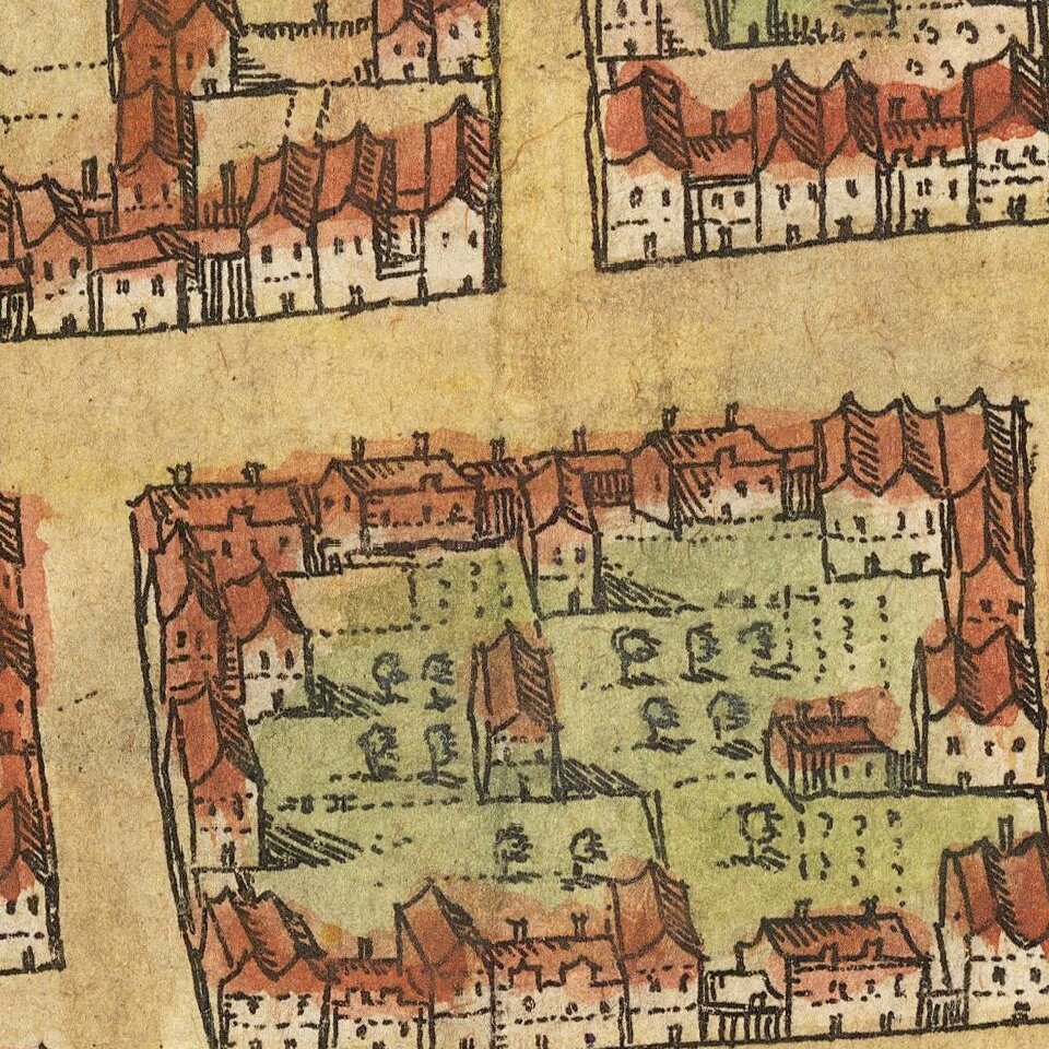 Georg Braun (1541-1622) was born and died in Cologne. His primary vocation was as Catholic cleric; he spent thirty-seven years as canon and dean at the church St. Maria ad Gradus, in Cologne. Braun was the chief editor of the Civitates orbis terrarum, the greatest book of town views ever published. His job entailed hiring artists, acquiring source material for the maps and views, and writing the text. In this role, he was assisted by Abraham Ortelius. Braun lived into his 80s, and he was the only member of the original team to witness the publication of the sixth volume in 1617.