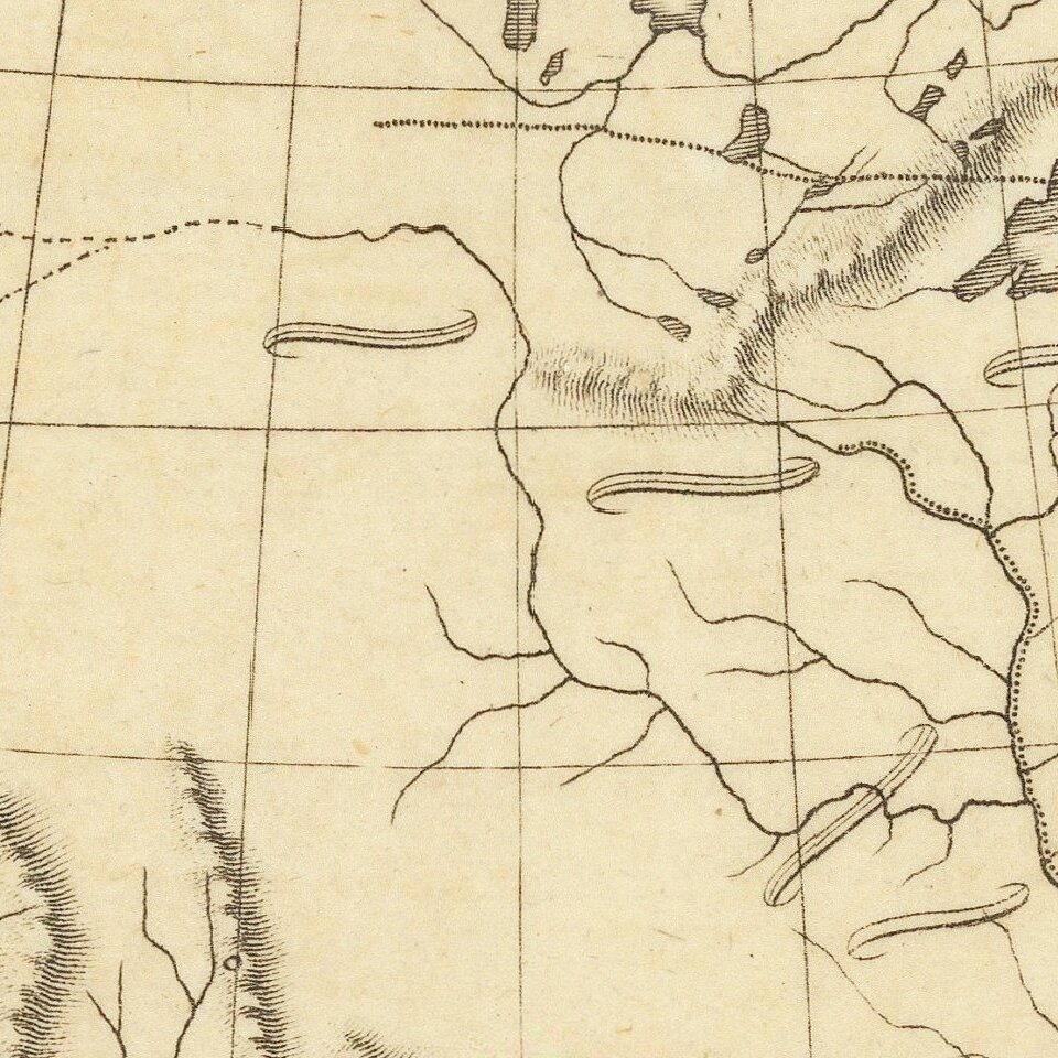 The map follows the cartographic features of Arrowsmith's maps of 1802, and most notably the numerous tentative water routes which are shown as possible tributaries of the Upper Missouri River, draining directly from the single cordillera depiction of the Rocky Mountains.