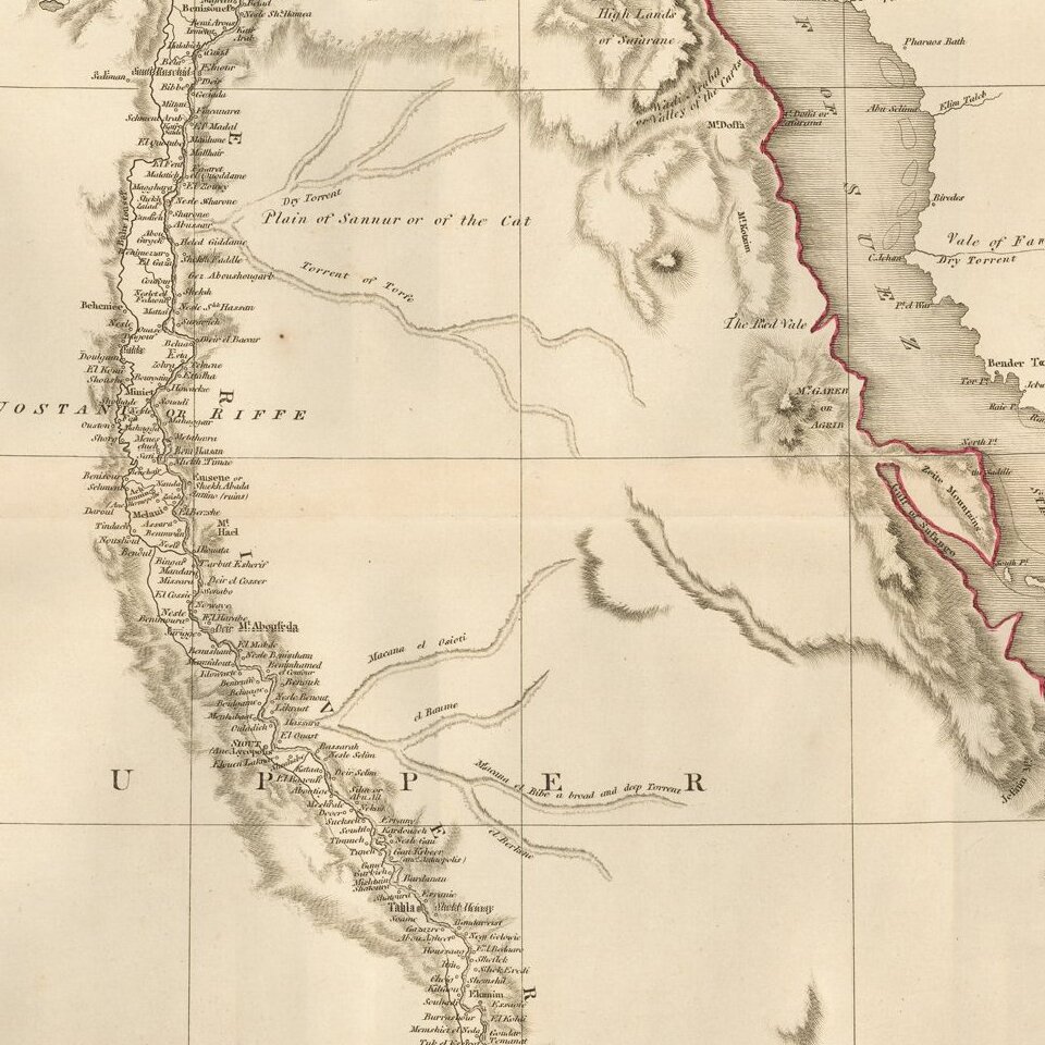 Highly detailed map of Egypt, following the Nile as far south as Asouan and Shelalat and including the Oasis of Magna, Oasis of Parva and other remarkable fine details. Includes the Gulf of Suez, Red Sea and Gulf of Acaba.